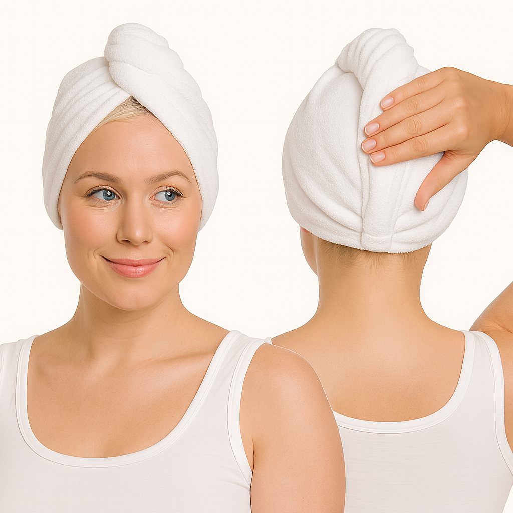 Say goodbye to wet shoulders and endless blow-drying. Our towel wraps lock in place and dry your hair faster, the cozy way.